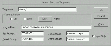 На рис.2.6 приведен диалог для определения свойств объекта (кнопки), управляющего значением дискретной переменной.