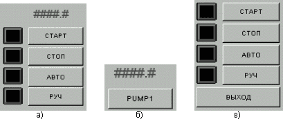 Применительно к рассматриваемому примеру функция (команда), вызывающая суперджин, может иметь вид AssPopUp(" SGenie", " %PUMP%", " %STATUS%"), а заменяемые имена переменных суперджина -? digital 1? и? digital 2?. Кнопки суперджина SGenie (рис.2.17, в) имеют следующие свойства: