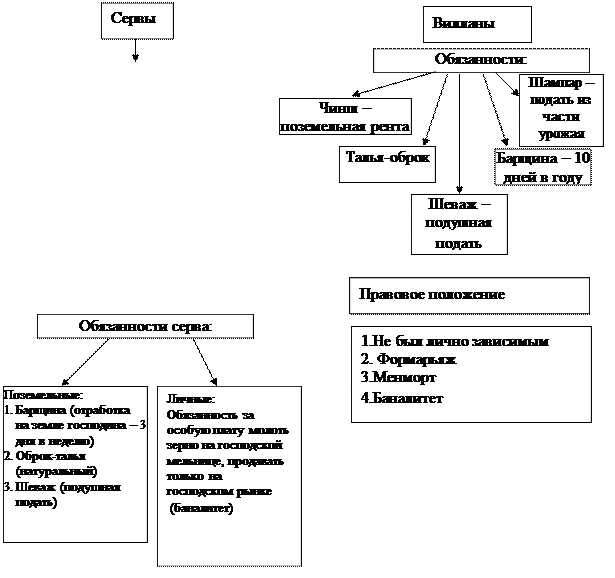 5) Образование корпоративно-цеховых отношений в городах, которые не прекращали борьбу за привилегии (борьбы за освобождение от сеньориальной монархии). Правовое положение городов: 1. Правовой статус горожан зависел от конкретной городской корпорации (сословно-корпоративный характер) (не входили дворяне, священники, сервы). 2. Ограниченная власть сеньора в отношении подвластного ему города (ограничение обязанностей горожан по отношению к сеньору). 3. Отмена принудительных работ и баналитетов. Основные черты сеньориальной монархии: 1) Экономическое положение – господство натурального характера. 2) Территориальная децентрализация (дробление герцогства и графства). 3) Дворцово-вотчинная система управления. 4) Король – по сути крупный феодал с особым титулом – первый среди равных. Государственный строй и местное управление: Основные черты органов государственной власти: 1. Королевский двор - королевская администрация (государственный аппарат). 2. Совещательный орган при короле. 3. Компетенция: смешение административной и судебной властей. 4. Деление по отраслям хозяйства. Основные черты местного управления: 1. Местное управление осуществлялось исключительно на территории королевского домена, другие сеньории имели свои органы местного самоуправления. 2. Компетенция: сбор королевских доходов; хозяйственное управление; финансовый контроль; судебные функции; административные функции. 3. Назначались королем.