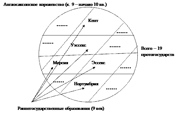 После завоевания кельтской Британии англами, саксами, ютами в 6 в., к началу 7 века в южной части острова образовались 19 протогосударств, наиболее сильными из которых были Нортумбрия, Мерсия, Эссекс, Уэссекс, Кент.