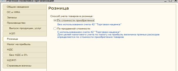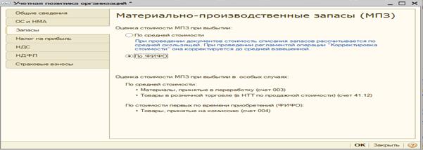 Закладка «Запасы» Способ оценки МПЗ при выбытии – ФИФО ( товар списываются по себестоимости первых по времени закупок)