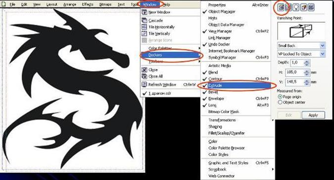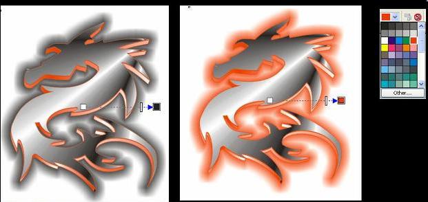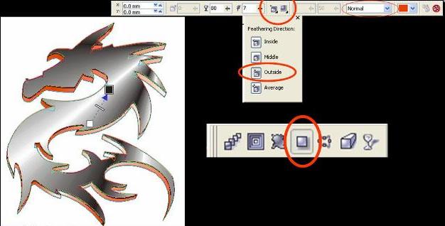 Возьмите инструмент Тень и левой клавишей мышки щелкните в центр дракона, не отпуская, оттяните курсор в сторону. Все параметры, как на рисунке