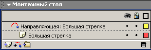 15. Выберите слой с маленькой стрелкой и создайте для него слой с направляющей, нажав кнопку Добавить направляющую движения