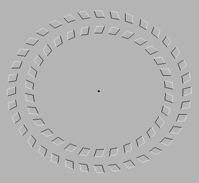 Смотрите на черную точку в центре и, не отрывая взгляда, подвигайте головой вперед-назад. Круги вокруг точки начнут двигаться.