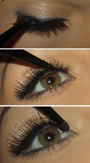 Пальцами возьмите кончики накладных ресниц и изогните их. На фото вверху показан правильный изгиб.