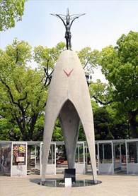 Из воспоминаний Расула Гамзатова: «Увидев в Хиросиме проект памятника простой японской девочке с журавлём в руках, узнав её историю, я испытал глубокое волнение, которое вылилось потом в стихи. Девочка лежала в госпитале и должна была вырезать из бумаги тысячу журавлей в надежде на выздоровление, но не успела – скончалась.