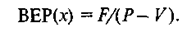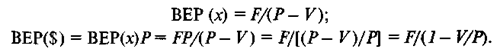 где TR — общий доход; ТС — общие затраты; BEP(x) — критическая точка в единицах продукции; ВЕР($) — критическая точка в денежных единицах (д. е.); Р — цена единицы продукции; х— количество произведенных единиц; F — постоянные затраты; V — переменные затраты на единицу продукции.