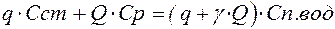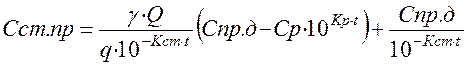 где Q – расход воды в реке, м3/с; q – расход сточных вод, поступающих в реку, м3/с; Ccт – концентрация загрязнения (данного вредного вещества) в стоке, мг/л; Сp – концентрация загрязнения (данного вредного вещества) в реке выше сброса в нее сточных вод (фоновая концентрация), мг/л; Cn.вод – концентрация загрязнения (данного вредного вещества) в реке перед расчетным пунктом водопользования (в общем случае в 1 км выше по течению реки), мг/л;