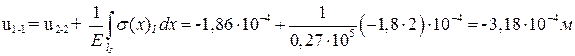 Геометрическим смыслом первой производной функции является тангенс угла наклона касательной к графику функции. В случае, когда первая производная обращается в ноль, функция имеет экстремум. Геометрическим смыслом интеграла является площадь, ограниченная графиком функции. Для получения перемещений можно интегрировать функцию продольных сил, функцию напряжений или функцию деформаций. В данном случае рациональнее всего работать с функцией деформаций. Помня о геометрическом смысле интеграла можно найти значения перемещений, суммируя площади эпюры деформаций. Определение перемещений всегда начинают с того сечения, в котором известно перемещение, в нашем случае – это заделка (u6-6=0). В пределах грузовых участков, где деформация (напряжение, продольное усилие) постоянна, перемещение определяют как
