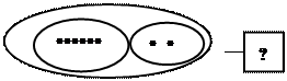 или 2) К. - 8 яб. С. -? яб., на 2 яб. м. На наш взгляд, вариант 2 целесообразнее, так как в задаче речь идёт о двух объектах и без стрелок вполне очевидно, численности каких множеств сравнивается. В тех случаях, когда в краткой записи трудно обозначить искомое вопросительным знаком, требование задачи записывается полностью. Не каждую задачу нужно иллюстрировать. Иллюстрация должна быть помощником, а не материалом, за которую ставится отметка. Но учить иллюстрации необходимо. На этапе ознакомления с задачей нового вида (типа) это должно быть предметом специального усвоения. Краткая запись, как вид иллюстрации задачи, используется во всех начальных классах для решения составных и реже - простых арифметических задач. 4) Особая трудность возникает при обучении решению первых простых арифметических задач у первоклассников. В методической литературе рекомендуется при обучении первоклассников решению простых арифметических задач использовать предметные или образные иллюстрации и схематические (в виде краткой записи или чертежа). Предметная иллюстрация, безусловно, помогает создать яркое представление той жизненной ситуации, которая описывается в задаче, что в дальнейшем служит отправным моментом для выбора арифметического действия. Однако, она имеет ряд недостатков: она не изображает наглядно объект усвоения - связь между данными и искомым, не помогает абстрагироваться от конкретной ситуации задачи и выделить существенно общее для всех задач каждого вида - связь между данными и искомым, её использование ограничено (особенно при самостоятельном решении), чаще всего она является «средством учителя», а не «средством самого ученика». В связи с этим предметную иллюстрацию целесообразно использовать только при ознакомлении с решением простых арифметических задач. Схематическая наглядность в виде краткой записи или чертежа имеет ряд преимуществ перед предметной или образной наглядностью, но затрудняет учеников, так как требует умения писать и чертить, что должно стать предметом специального усвоения. Следовательно, использовать её с первых дней обучения ребёнка школе сложно. Учитывая это, при обучении первоклассников решению простых арифметических задач мы считаем целесообразным использовать иллюстрацию в виде «картинки с точками». При решении простых арифметических задач объектом усвоения является не та ситуация, которая описана в задаче, а те связи, которые существуют между данными или между данными и искомым. Разнообразие конкретных предметов и сюжетов в задачах не позволяет детям выделить и осознать эти связи при использовании предметной наглядности. Для того чтобы помочь детям выполнению этих операций при решении задачи, мы поступили следующим образом [17]. Каждый конкретный предмет, о котором идёт речь в задаче, мы обозначили точкой, что позволило абстрагироваться от всех свойств объектов в задаче. С помощью схем мы изобразили и связи между объектами, т.е. операции над множествами. Так модель ситуации, описанной в задаче: «С аэродрома улетело сначала 6 самолётов, а потом ещё 2 самолёта. Сколько всего самолётов улетело с аэродрома?», будет иметь вид: