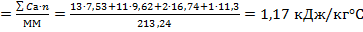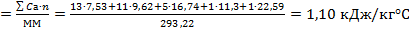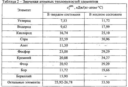 · ФАК (принимаем, что ФАК = 100%, т.к.1% примесей неизвестен) GФАК = 454.6 кг (табл. 1.1) СФАК c – атомная теплоемкость элемента, входящего в состав молекулы, кДж/кг·°С; n – количество атомов элемента в молекуле; ММ – молярная масса соединения кг/моль;