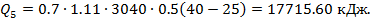 Q5 = 1, 11 · 0, 7 · 3040 · 0, 5 · (72, 34 - 90) = - 20857, 17 кДж
