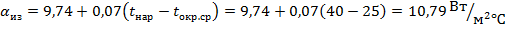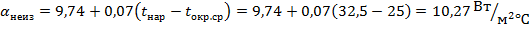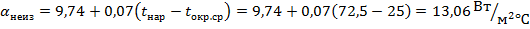Коэффициент теплоотдачи для неизолированной и изолированной частей реактора: