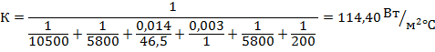 λ – теплопроводность материала стенки реактора и защитного покрытия, λ стали = 46, 5 λ эмали = 1