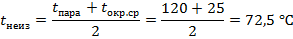 Для оборудования в помещении при температуре теплоносителя > 100°С, tизол = 40°С