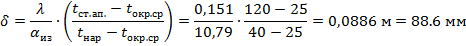 Изоляция-асбест (коэффициент теплопроводности λ = 0, 151 Толщина асбестовой изоляции: