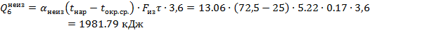 Q5 = 1, 11 · 0, 7 · 3040 · 0, 5 · (113, 42 - 50) = 74901, 56 кДж 6. Q6 Температура неизолированной стенки реактора: