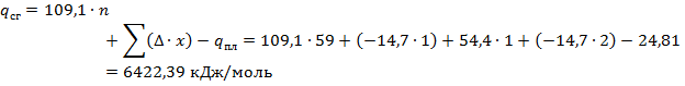 n = 12 · 4 + 1 ·2 + 9 · 1 = 59 ∆ Ar-Alk = -14.7; х = 2 ∆ Ar-NH-Ar = 54.4; х = 1 ∆ Ar-N = -14.7; х = 2 ∆ Ar-СО-Ar = 17.2; х = 1