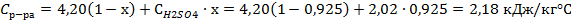 4. Q4 = · ФАК При 90°С увеличиваем теплоемкость на 18%: СФАК = 1, 17·1, 18 = 1, 38 QФАК = 0, 8 · 454, 6 · 1, 38 · 90 = 45169, 06 КДж · Раствор H2SO4: При 90°С: СH2SO4 = 1.71·1.18 = 2, 02 Своды = 4, 20