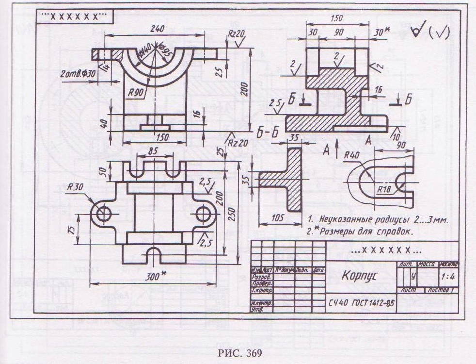Чертеж детали должен содержать минимальное, но достаточное для представления формы детали число изображений (видов, разрезов и сечений), выполненных с применением условностей и упрощений по стандартам ЕСКД. На чертеже должна быть обозначена шероховатость поверхностей детали и нанесены геометри-