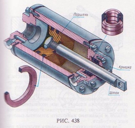 Места соединения деталей, находящихся под воздействием избыточного давления какой-либо среды, должны быть уплотнены (герметизированы). Для уплотнения зазоров между плоскими торцовыми поверхностями соединения деталей применяются торцовые уплотнения. В качестве торцовых уплотнений обычно применяются уплотнительные прокладки из соответствующего листового материала (рис. 436, а). Форма и очертание уп-лотнительной прокладки определяются формой торцовой поверхности, которую необходимо уплотнить. Торцовые уплотнения закладываются под крышки, фланцы, корпуса клапанов, вентилей и т.п. В зависимости от свойств среды, создающей избыточное давление, и условий эксплуатации того или иного устройства уплотнительные прокладки выполняются из различных материалов (текстолита, технической резины, паронита, асбестового картона). Для уплотнения зазоров между сопряженными цилиндрическими поверхностями применяются радиальные уплотнения. В простейшем случае такое уплотнение осуществляется уплотнитель-ными кольцами, закладываемыми в кольцевые проточки, выполненные в одной из сопрягаемых деталей (рис. 436, б и 437, а). Размеры колец выбирают так, чтобы кольца немного выступали из проточек, в которые они заложены, в результате чего и создается соответствующее уплотнение. Уплотнительные кольца могут иметь различную форму поперечного сечения и изготовляться из различных материалов (технической резины, технического войлока, фетра, графитизированного асбестового шнура и др.). Кольца из технического войлока или фетра предохраняют также и от вытекания смазочного материала через зазор между валом и корпусом (или крышкой) подшипника. Кольцо прямоугольного сечения устанавливается в проточку трапецеидального сечения и деформируется по форме проточки (рис. 437, а), обеспечивая достаточно плотный контакт кольца с поверхностью вала. В некоторых случаях в качестве уплотнения используются кольцевые проточки, заполняемые густым смазочным материалом. На рис. 437, б в крышке, в месте выхода конца вала, выполнены три кольцевые проточки, заполненные густым смазочным материалом, который и создаст необходимое уплотнение. Широко распространены уплотнения манжетами различных поперечных сечений. Например, уплотнение между штоком и крышкой гидравлического цилиндра справа (рис. 438) осуществляется манжетами. Плотное прилегание манжет к
