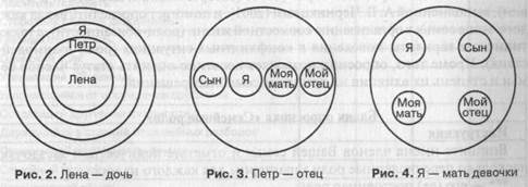 Авторами предложены критерии, по которым производится оценка результатов тестирования: □ число членов семьи, попавших в площадь круга; П величина кружков; □ расположение кружков относительно друг друга; П дистанция между ними. Оценивая результат по первому критерию, исследователь сопоставляет число членов семьи, изображенных испытуемым, с реально существующим. Возможно, что член семьи, с которым испытуемый находится в конфликтных отношениях, не попадет в большой круг, он будет «забыт». В то же время кто-то из посторонних лиц, животных, любимых предметов может быть изображен в качестве члена семьи. Далее внимание обращается на величину кружков. Больший, по сравнению с другими, кружок, выполненный для обозначения испытуемым самого себя, говорит о достаточной или завышенной самооценке, меньший — о пониженной самооценке. Величина кружков других членов семьи говорит об их значимости в глазах испытуемого. Следует обратить внимание на расположение кружков в площади тестового поля круга и по отношению друг к другу (третий критерий). Изображение испытуемым своего кружка в центре круга может говорить об эгоцентрической направленности личности, а помещение себя внизу, в стороне от кружков, символизирующих других членов семьи, может указывать на переживание эмоционального отвержения. Наиболее значимые члены семьи изображаются испытуемым в виде больших по размеру кружочков в центре или в верхней части тестового поля. Наконец, определенную информацию можно получить, проанализировав расстояния между кружками (четвертый критерий). Удаленность одного кружка от других может говорить о конфликтных отношениях в семье, эмоциональном отвержении со стороны испытуемого или, наоборот, в его адрес. Своеобразное «слипание», когда кружки наслаиваются один на другой, соприкасаются или находятся друг в друге, говорит о недифференцированности «Я» этих членов семьи, наличии симбиотических связей. В качестве примера можно привести тест матери девочки (рис. 2), больной шизофренией (такой же результат выполнения теста, который условно называется авторами «матрешкой», встречается примерно в 3% случаев тестирования здоровых, социально адаптированных родителей). Другой пример иллюстрирует динамику семейных взаимоотношений в процессе семейной психотерапии (Эйдемиллер Э. Г., Добряков И. В., Никольская И. М., 2003). В начале психотерапии мать изобразила себя, сына и своих родителей в одну «линию» (с мужем она в разводе). Интерпретируя результаты тестирования, можно сказать, что у испытуемой недостаточно дифференцированное отношение к членам семьи и опосредованное (через бабушку) отношение к отцу (рис. 3). При завершении семейной психотерапии мать мальчика сказала: «У меня есть своя семья — это я и мой сын. К вам, родители, у меня есть уважение, но мои семейные дела для меня важней». Заключительная социограмма представлена на рис. 4.