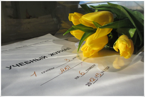 (8 марта 2013г.) А также не пропускаем и дней рождений! Мы заранее придумываем всей группой, что дарим имениннику, обговариваем сумму, скидываемся и дарим человеку что-то приятное. Стараемся подбирать подарки так, чтобы человеку это действительно пригодилось. Вот, например, недавно дарили владельцу айфона сенсорные перчатки, чтобы не приходилось «носом смс набирать» зимой. Нашему замечательному профоргу дарили толстовку-МЭИ, так как знали, что ей очень хотелось такую иметь! Девочкам-именинницам непременно дарим цветы. В общем, всё у нас здорово!