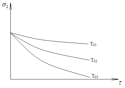 Рисунок 2 – Зависимость остаточных напряжений от температуры Т0 и времени отжига (Т01< Т02< Т03)