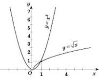 Область визначення — множина всіх невід’ємних дійсних чисел. Графік — одна гілка параболи, яка розташована в I координатному куті (див. рисунок).