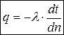 Зависит от материала, от температуры и влажности. Это количество теплоты, проходящее через единицу площади изотермической поверхности за единицу времени при единичном grad t. Определяется экспериментально (коэффициент согласованности). Для определения теплового потока необходимо умножить плотность потока на площадь Q=F× q