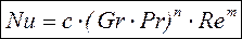 Коэффициенты с, n, m определяются экспериментально. Критериальные числа конвективного теплообмена: Число Рейнольдса: V – скорость движения потока, м/с; d – диаметр сечения; n– коэффициент кинематической вязкости. Число Прандтля: Критерий подобия полей скоростей и температур. Число Грасгофа: Отношение гравитационной силы к силам вязкости. Нуссельта.