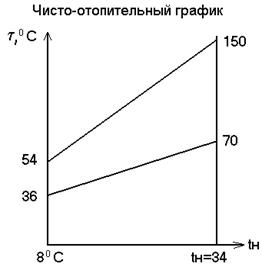 Температурные графики – это графики зависимости температуры обратной и подающей воды в тепловых сетях в зависимости от температуры наружного воздуха. По температурам подающей и обратной воды бывают следующие графики: 85-70, 95-70, 105-70, 130-70, 150-70. По назначению: чисто-отопительный и совмещённый (отопительно-бытовой).