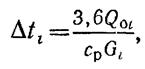 где Qoi—потери тепла в окружающую среду на участке паропров0Да, кВт; ср — теплоемкость пара, кДж/кг-°С; Gi— расход пара на участке, т/ч.