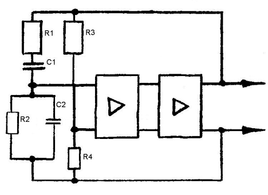 Рисунок 3.5 - Схемы задающего генератора типа RC – 3.6.1 схема с использованием двухкаскадного усилителя, 3.6.2 – схема и использованием операционного усилителя.
