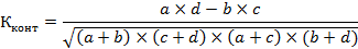 Коэффициент контингенции изменяется по -1 до +1. Если