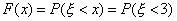 Решение: Ясно, что если , то F(x)=0, так как не принимает значений, меньших единицы. Если , то ; если , то . Но событие < 3 в данном случае является суммой двух несовместных событий: =1 и =2. Следовательно,