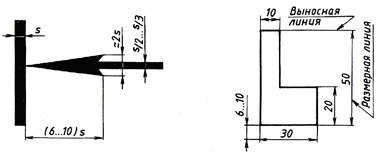 Если шов выполняется по периметру, то линию-выноску заканчивают окружностью (б). Марка клея записывается или в технических требованиях, или в спецификации в разделе «Материалы». Клеевые соединения осуществляют различными способами. Чаще всего применяется соединение внахлестку и встык с помощью планки, втулки и т. п. Надежное соединение деталей малой толщины, как правило, возможно только склеиванием. Рекомендуемые конструктивные формы клеевых соединений: а — плоскостные; б — тавровые; в — цилиндрические I — нахлесточные соединения; II — врезные (шпунтовые); III — стыковые К недостаткам клеевых соединений относятся: 1. незначительная тепловая стойкость (при температуре выше +90° С прочность их резко снижается); 2. склонность к ползучести при длительном воздействии больших статических нагрузок; 3. длительные сроки сушки; 4. необходимость нагрева для получения стойких и герметичных соединений; 5. низкая прочность на сдвиг и др. Причины непрочности клеевых соединений: 1. плохая очистка склеиваемых поверхностей; 2. неравномерное нанесение слоя на склеиваемые поверхности; 3. затвердевание на поверхности клея до соединения деталей; 4. недостаточное давление на соединяемые части склеиваемых деталей; 5. неправильный температурный режим и недостаточное время сушки соединенных частей. БИЛЕТ 12 1. Правила нанесения размеров на чертежах по ГОСТ 2.307-68 См. билет 10 пункт 2