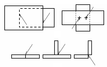 По способу взаимного расположения свариваемых деталей различают соединения: стыковые - сварное соединение двух элементов, примыкающих друг к другу торцовыми поверхностями и расположенных в одной плоскости или на одной поверхности; угловые - сварное соединение двух элементов, расположенных под углом и сваренных в месте примыкания их краев; тавровые - сварное соединение, в котором торец одного элемента примыкает под углом и приварен к боковой поверхности другого элемента; внахлестку - сварное соединение, в котором сваренные элементы расположены параллельно и частично перекрывают друг друга.