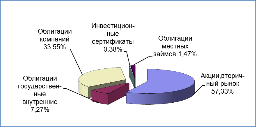 Рисунок 2.2: Структура торгов различными ценными бумагами на фондовом рынке (с 01.01 по 05.06.2011г.), %
