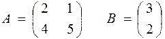 Известно, что система линейных уравнений в матричном представлении записывается в виде: AX=B. Решение такой системы записывается в виде X=A-1B, Где A-1 –матрица, обратная по отношению к А. Пример решения системы линейных уравнений: