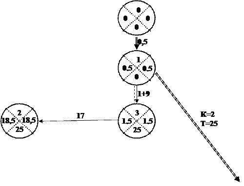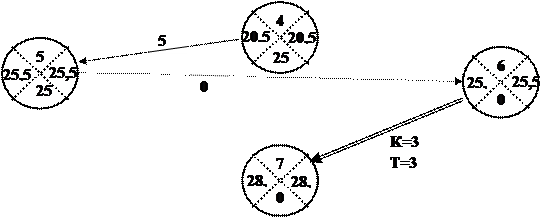 Выполним оптимизацию сетевого графа на основании приведенных выше принципов. Оптимизированный сетевой граф при минимальном числе бригад исполнителей приведен на рисунке 3.8. Характеристика выполняемых бригадами технологических операций приведена в таблице 3.6. Основные отличия оптимизированного сетевого графа от исходного заключаются в следующем: · В запроектированном технологическом процессе участвуют только две бригады исполнителей (обеспечивается минимальная себестоимость запроектированного технологического процесса); · Технологическая операция 7, расположенная на критическом пути сетевого графа, выполняется одновременно двумя бригадами исполнителей; · Технологический цикл составил 55.5 дней. Относительно исходного ориентированного сетевого графа он уменьшился на 5 дней, что составляет примерно 10%; · Резерв времени в 25 дней для начала выполнения бригадой №2 7 технологической операции. Следовательно, в запроектированном варианте технологического процесса не реализован принцип непрерывности и уменьшение продолжительности технологического цикла составляет не значимую величину (10%). Следовательно, сокращение числа бригад и нарушение принципа непрерывности обусловливает неудовлетворительное качество оптимизации запроектированного технологического процесса. Таблица 3.6 Распределение операций по бригадам