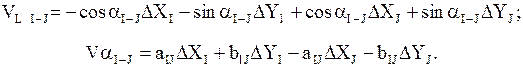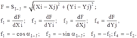 Частные производные функции (уравненной длины линии) по соответствующим параметрам (уравненным координатам пунктов) вычисляются в виде