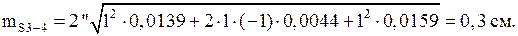 Подставляя значения частных производных в формулу (4.45), получают точность определения стороны геодезической сети в любом интересующем нас месте. Например, если частные производные для длины линии 3-4 соответственно равны f1 = 1, f2 = 0, f3 = -1, f4 = 0, то СКО определения стороны будет равна