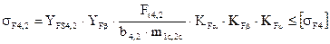 где YFS4 – коэффициент, учитывающий форму зуба. Выбирая по [25. табл.2.11. с.20]; YFβ – коэффициент, учитывающий наклон зуба. Для прямозубых YFβ = 1. для косозубых YFβ = 1 – (β 0/140) [25. с.18]; KFα – коэффициент, учитывающий неравномерность распределения нагрузки между зубьями. Для прямозубых колес KFα = 1. для косозубых берется из табл.2.8. [25. с.18] принимается KFα = 1, 22; KFβ – коэффициент концентрации нагрузки [35. табл.2.9. с.18]. принимается KFβ = 1, 05; KFυ – коэффициент динамичности. KFυ = 1, 09 [25. табл.2.10. с.19]. б) для шестерни