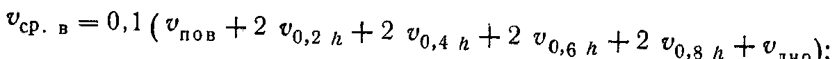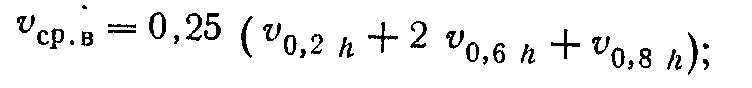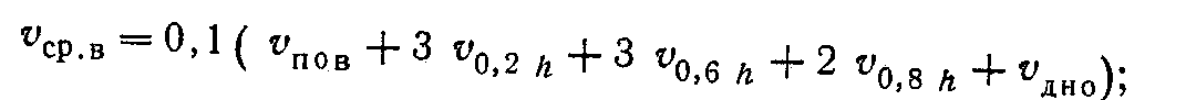 При наличии ледяного покрова или водной растительности среднюю скорость на вертикали определяют по таким формулам: при измерении в шести точках