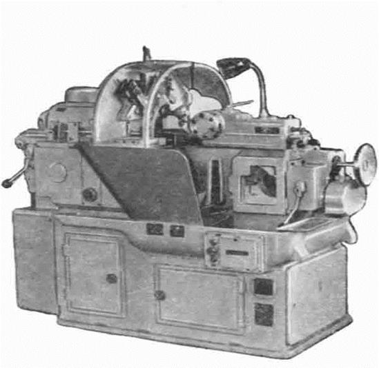 Автомат предназначен для серийного и массового производства деталей из круглого, квадратного и шестигранного калиброванного прутка. В качестве приспособления станок может иметь магазинное устройство для обработки деталей из штучных заготовок. На основании установлена станина со шпиндельной бабкой, револьверным суппортом, имеющим шестипозиционную револьверную головку, и поперечными суппортами: двумя горизонтальными (передним и задним) и двумя вертикальными. На переднем поперечном суппорте расположен продольный суппорт, который может перемещаться в горизонтальной плоскости параллельно оси шпинделя или под углом к нему. Инструментом револьверной головки, имеющей продольное перемещение, производится обтачивание, обработка отверстий и нарезание резьбы. Инструментом поперечных суппортов производится обработка фасонных поверхностей, подрезка, снятие фасок и отрезка готовой детали. Инструментом продольного суппорта производятся точение конусов и другие операции.