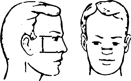 1 2 3 Рис. 3. Физиономическая (1) и морфологическая (2) высота лица, высота лба (3) · наименьшая ширина лба - наименьшее расстояние между фронтотемпоральными точками над скуловыми отростками; · нижнечелюстная ширина (нижняя ширина лица) - расстояние между наиболее выступающими в стороны точками углов нижней челюсти (рис. 4).