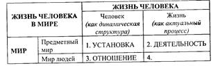 Исходным предметом типологического анализа является «жизнь человека в мире». В нем выделяются два аспекта — «жизнь человека» и «мир». Каждый из них, в свою очередь, делится на два аспекта: «мир» — на «предметный мир» и «мир людей», а «жизнь человека» — на «человека», рассматриваемого как некая потенциально активная, то есть «динамическая» структура, и «жизнь», рассматриваемую как «актуальный процесс». Пересечение этих оппозиций дифференцирует исходное целое на четыре «состояния». Правило чтения типологии: например, деятельность (тип 2) — это психологическая единица анализа актуального процесса жизни человека, взятого в его отношении к предметному миру. Из предшествующего обсуждения ясно, почему типы 1-й, 2-й и 3-й обозначены соответственно как установка, деятельность и отношение. Однако остается еще одна свободная клетка этой категориальной типологии. По логике схемы она должна быть заполнена категорией, выражающей форму осуществления процесса жизни, который реализует отношение человека к другим людям. Вполне очевидно, что в качестве этой категории может выступать лишь одно — категория общения. В процессе преодоления классической психологии в нашей науке были созданы три общепсихологические теории, центральными категориями которых являются категории установки, отношения и деятельности. Мы обнаружили, что эти теории едины в своем понимании онтологии, из которой должна исходить психологическая наука. В то же время при определении предмета науки, выборе основного объекта изучения и формировании «единицы» его анализа обсуждаемые концепции расходятся, что в итоге выражается в разнице их центральных категорий. Однако это расхождение мало напоминает ситуацию «лебедя, рака и щуки», а скорее ситуацию планомерного разделения труда, поскольку анализ обнаруживает, что данные категории связаны в стройную логическую систему, в которой они хотя и противопоставлены друг другу, но — не как взаимоисключающие, а как взаимодополняющие. В этой категориальной системе есть еще один неотъемлемый элемент — категория общения. Следовательно, по логике истории в отечественной психологической науке должна быть создана и соответствующая теория. Такую задачу нужно было бы поставить, если бы она не была уже поставлена в исследованиях А.А. Леонтьева (Леонтьев, 1974), придавшего проблеме общения общепсихологический статус, и особенно — Б.Ф. Ломова (1975), который пошел дальше, наделив категорию общения статусом «нового методологического принципа» (см. Абульханова-Славская, 1980, с, 90)[33]. Думается, что указанную задачу можно было поставить и более остро, как задачу построения особой общепсихологической теории общения, в которой общение выступило бы не просто как важная среди равных категорий и не просто как один из методологических принципов, а как центральная категория и главный объяснительный принцип[34]. Подобную «острую» постановку проблемы следовало бы мотивировать не тем, что общение будто бы не может быть рассмотрено с точки зрения схемы предметной деятельности, разработанной А.Н. Леонтьевым, как полагает Б.Ф. Ломов (1975; 1979)[35], а стремлением детально проработать саму категорию общения, чтобы проследить до конца все ее потенциальные возможности, стремлением, вытекающим из понимания огромного (хотя, естественно, не безграничного) значения э