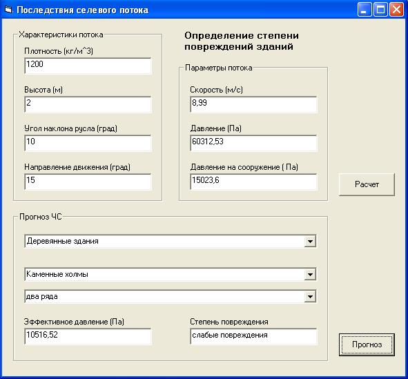 Воздействие селевых потоков на сооружения 26 Интерфейс приложения “Последствия селевого потока”