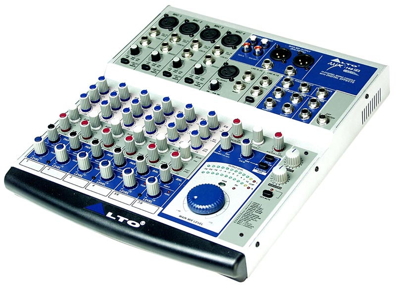 | Тип: Микшерный пульт с DSP, 4 моно, 2 стерео, 2 AUX, 3-х EQ и встроенным портом USB Четырнадцатиканальный микшерный пульт со встроенным процессором эффектов. Каждый моноканал содержит микрофонный вход (симметричный XLR, схема на дискретных элементах), линейный вход (симметричный джек), кнопку включения обрезного фильтра низких частот (18 дБ/окт, частота среза 75 Гц), регулятор чувствительности, трехполосный эквалайзер, два регулятора уровня посылов, регулятор панорамы, вращаемый фейдер уровня и пиковый светодиодный индикатор. На всех моноканалах есть гнезда разрывов для подключения внешних приборов обработки. Фантомное питание (+48 В) включается для всех микрофонных входов сразу. Каждый стереоканал имеет два линейных входа (симметричные, джеки), трехполосный эквалайзер, два регулятора уровня посылов, регулятор баланса, вращаемый фейдер уровня и пиковый светодиодный индикатор. Первый стереоканал можно использовать как моно микрофонный (разъем XLR). Шины посылов на внешние эффекты (одна до фейдера, другая после) имеют моновыходы (джеки). Есть две пары основных линейных выходов (симметричные, XLR и джеки) с большим вращаемым фейдером уровня, пара мониторных выходов (несимметричные, джеки) и выход для наушников (джек) с общим регулятором уровня. Кроме того, два входа и два выхода для двухдорожечных устройств (RCA), два стереовозврата (каждый на двух джеках) с регуляторами уровня, два 12-сегментных светодиодных индикатора уровня, а также кнопки назначения входов для двухдорожечных устройств на основные выходы и мониторную матрицу, кнопки назначения сигнала с входа второго возврата на первую шину посыла. Встроенный процессор эффектов имеет 24-разрядные аналого-цифровые и цифро-аналоговые преобразователи, все вычисления производятся также в 24-разрядном виде. Один из 256 нередактируемых пэтчей выбирается переключателями PRESET и VARIATION, есть светодиодный индикатор уровня, и кнопка заглушения процессора. Из имеющихся алгоритмов есть четыре вида реверберации, задержка, хорус, фленджер и комбинированные. Основные технические характеристики Количество каналов, шт 14 Стерео пары, шт 4 AUX посылы 2 BUS подгруппы 2 Соотношение сигнал/шум, Дб 115 DSP процессор 24 битный с 256 эффектами Индикация дискретная индикация выходного сигнала Высота, юнит 1 Размеры, мм 270× 310 x 35/45 Вес, кг 3